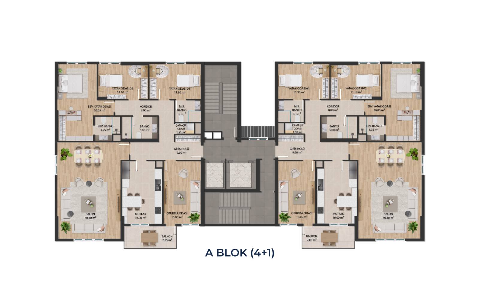 Mostar Konsept, farklı yaşam biçimlerine uygun 4+1 ve 5+1 daire seçenekleri sunarak, yeşile hakim geniş yaşam alanlarıyla konforlu bir yaşam vaat ediyor. Modern ve zamansız tasarımıyla, farklı hayat tarzlarına uyum sağlayabilecek kullanışlı daireler, her detayıyla yüksek konfor beklentilerini karşılamak üzere tasarlandı. Proje, 3 bloktan oluşan ve 7.092 m² alanda konumlanan 52 daire ile yaşam alanlarına değer katmaktadır.