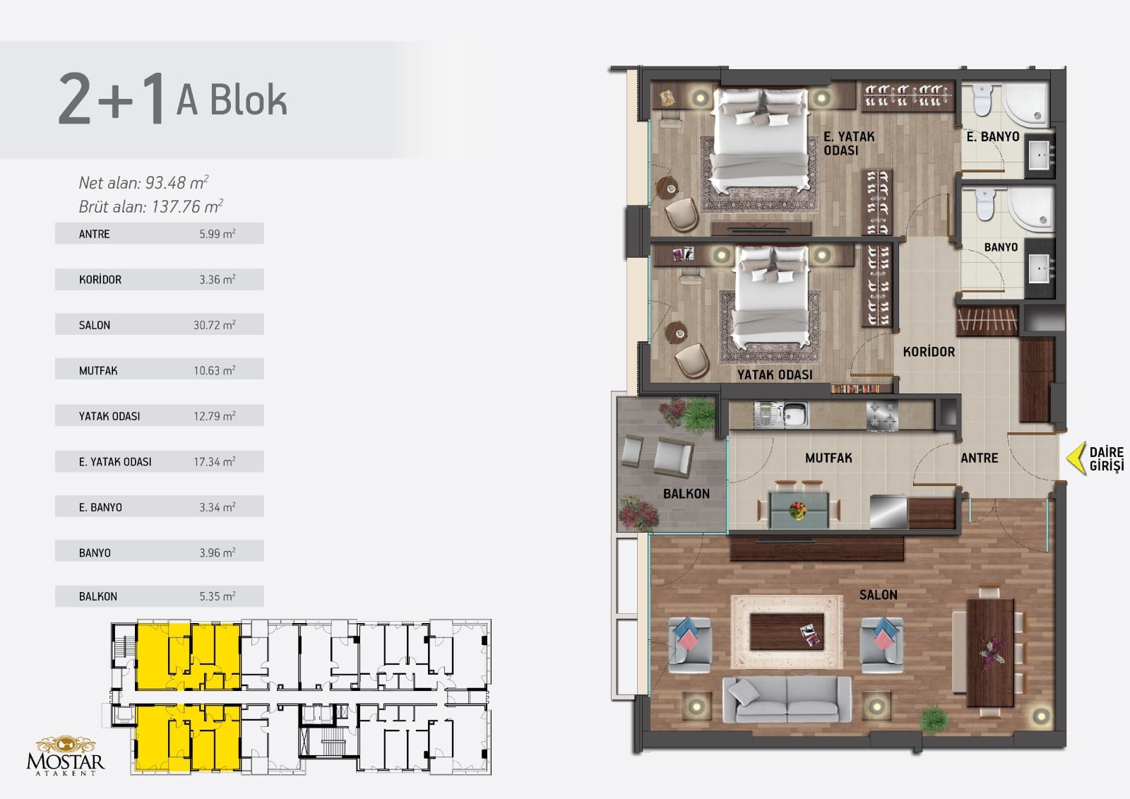 Mostar Atakent, modern mimarisi ve şık iç dekorasyonuyla İstanbul’un yükselen değerlerinden biridir. 1+1, 2+1, 3+1 ve 4+1 daire seçenekleriyle, siz ve aileniz konforlu mekanlarda, sevdiklerinizle birlikte unutulmaz sohbetlere ev sahipliği yapacak. Projemizde, yaşamınıza yakışan her detay özenle tasarlandı; zemin döşemeleri, aydınlatmalar ve diğer birçok küçük detay, estetik ve fonksiyonellik düşünülerek seçildi.